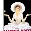 This Art Deco advertising poster shows a woman in an early 20th century swimsuit surrounded by tropical plants and raising her arms to embrace the sun.